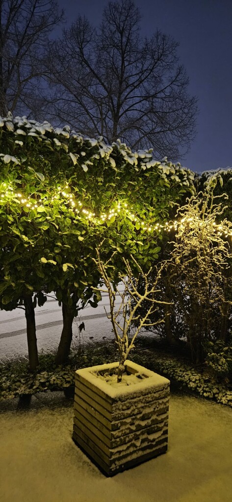 4 cm op de stoep, 6 cm gras. Sneeuwt nog lichtjes.