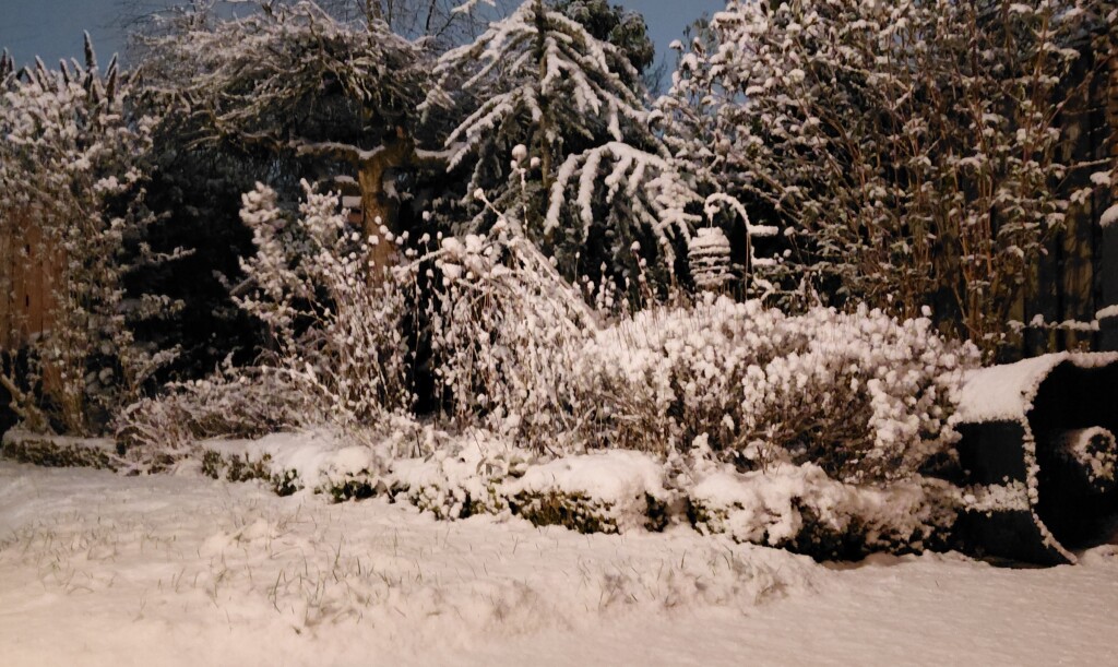 Hier nog wat vlokjes, nu 5-7cm op het gras.