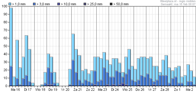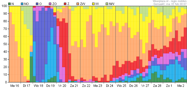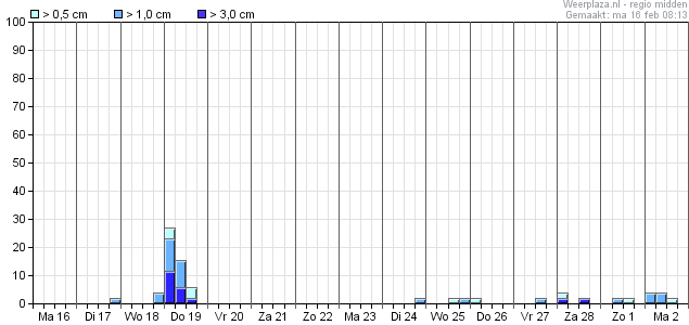 Kansen zijn het grootst in de periode woensdag tot en met vrijdag en daarna zijn er vanaf woensdag 25 februari weer langzaam oplopende kansen te zien.
