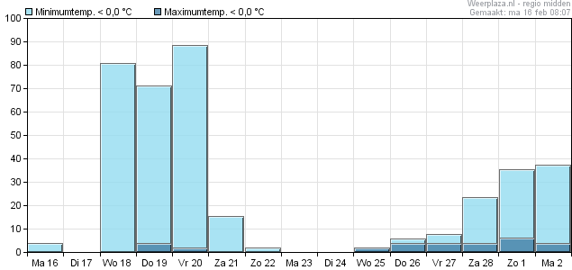 Hierop volgen dan een drietal frisse dagen met maxima rond de 3 graden en in de eerste twee nachten lichte en in de derde nacht kans op matige vorst.