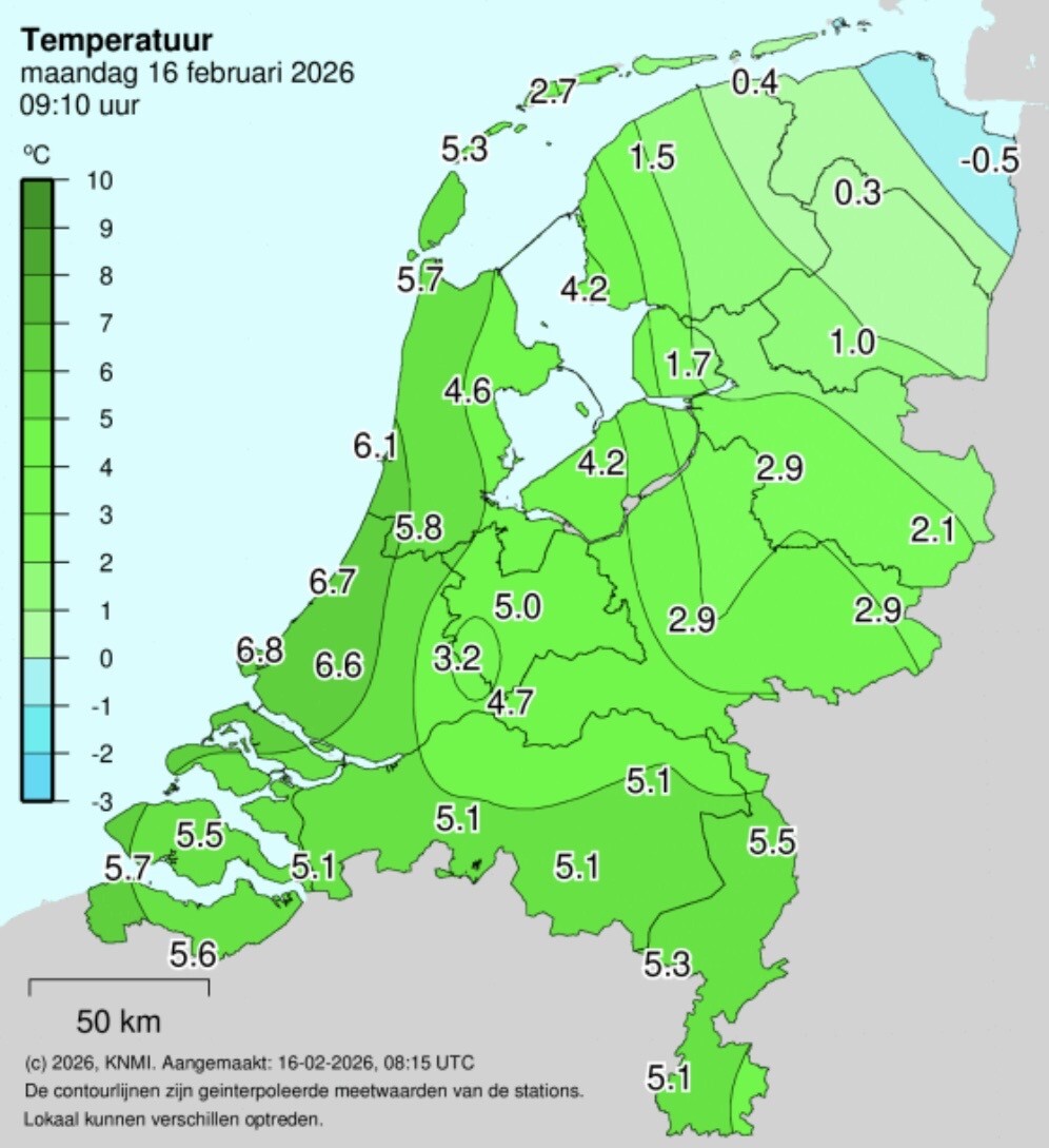 Alle sneeuw weer weg, vertrouwd groen en grauw buiten. Temperatuurkaart weer normaal groen en lichtblauw in het NO die van geen wijken weet. De aanwezige sneeuw aldaar. Het normale weerbeeld deze winter zullen we maar zeggen.