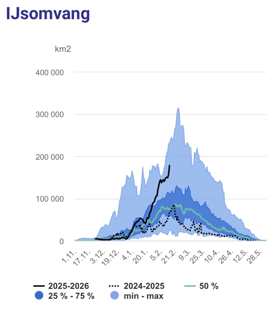 In ondermeer het Skagerak ligt echt veel zeeijs. Dit is bijna historisch.