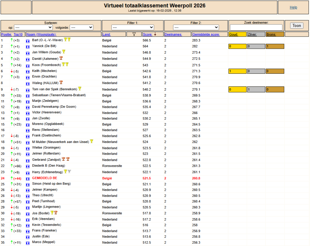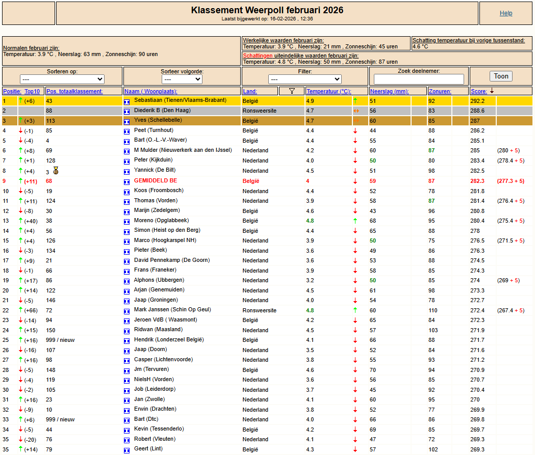 Tussenstand Weerpoll feb '26 t/m 15-02