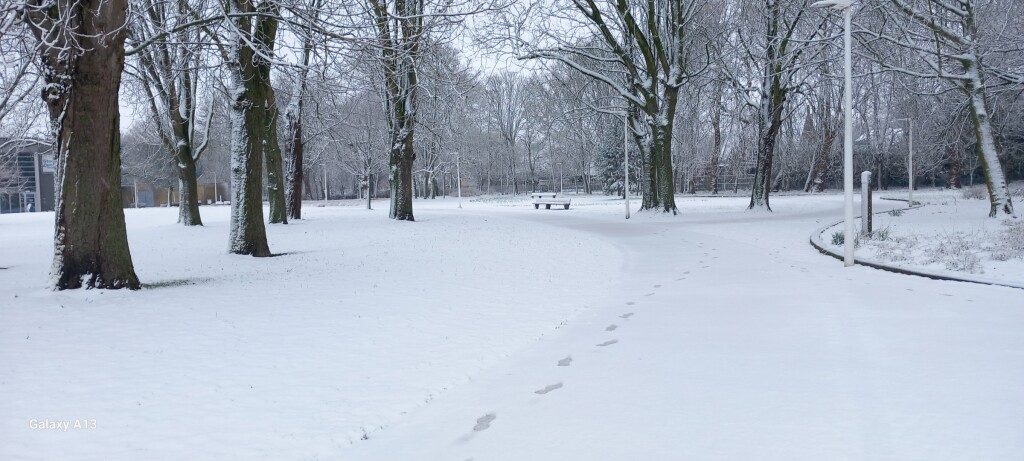 wandeling gisteren toen de sneeuwval bijna over was. De hele winter hadden we vrijwel nog niks gekregen qua sneeuw of winterweer maar gisteren vielen we toch een beetje in de prijzen. Met in mn achterhoofd dat de dooi snel ging intreden wat dan ook zo was want vanochtend was niks meer te bespeuren van sneeuw. Tegenwoordig moet je snel zijn om wat foto's te schooten. Ach een sneeuwlandschap, het blijft zn charme hebben.