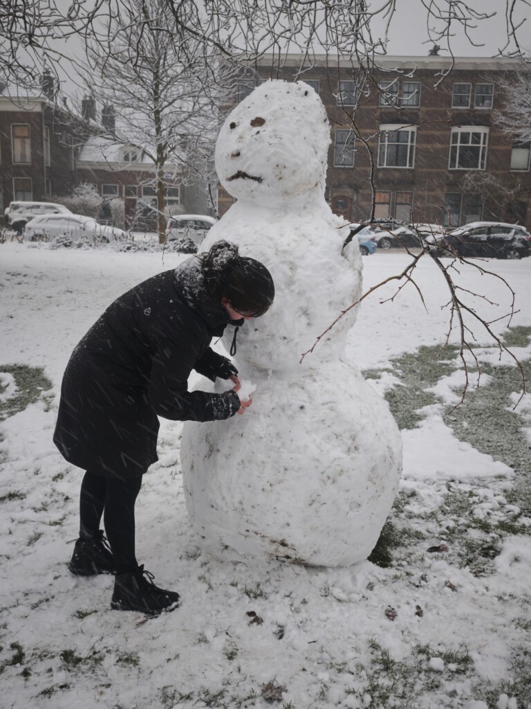 Ook eentje om het af te leren, een die aan een sneeuwvrouwtje. Aan het bouwen was, de woorden van de maker