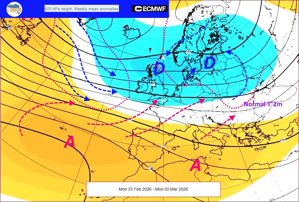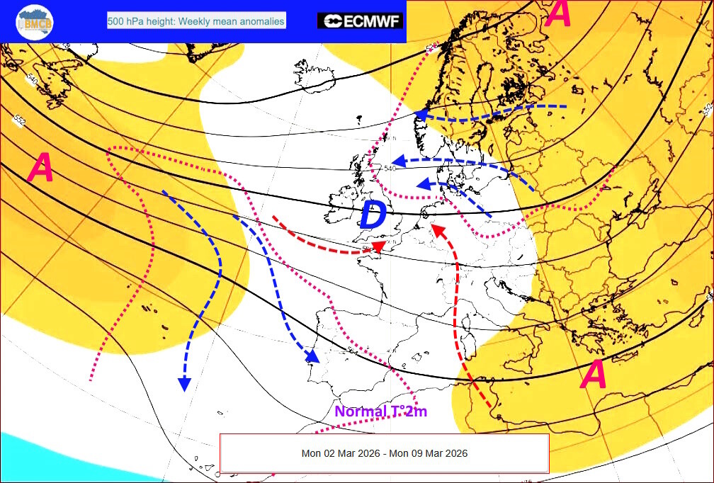 Het einde van februari en de eerste dagen van maart zouden worden gekenmerkt door een uitgesproken synoptische configuratie boven de Noord-Atlantische regio en West-Europa.