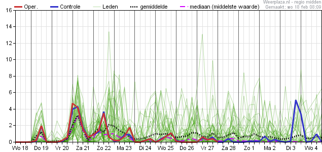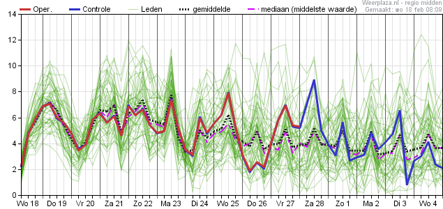 Daarbij valt op dat er vanaf woensdag een steeds verder toenemende spreiding te zien is met opties die uiteenlopen van noordwest tot noordoost (over zuid bezien).