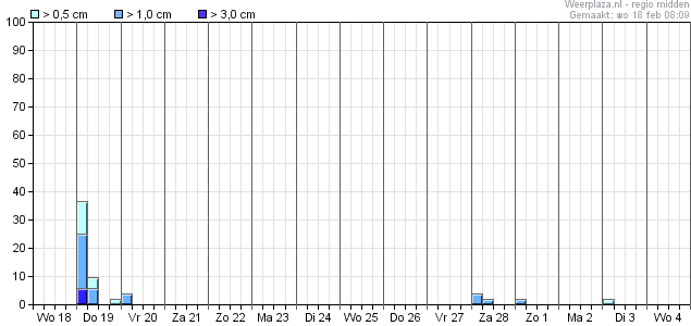 Ook op donderdag ligt de maximum temperatuur nog in de dubbele cijfers (zo'n 10 graden) maar dat is dan weer voor eventjes de laatste keer, want daarna liggen de maxima rond 8 a 9 graden.