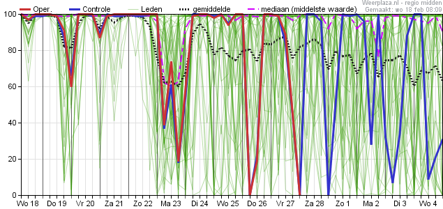 Ook hier zie je op vrijdag de temperatuur alleen maar oplopen en wordt de maximum temperatuur in de avond bereikt met een waarde van zo'n 7 graden.