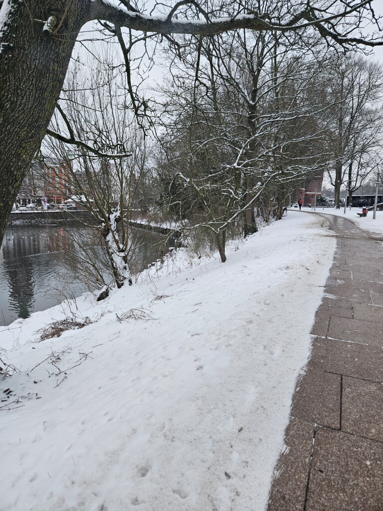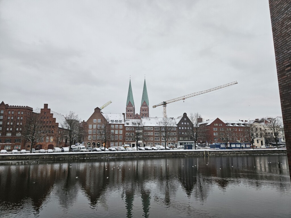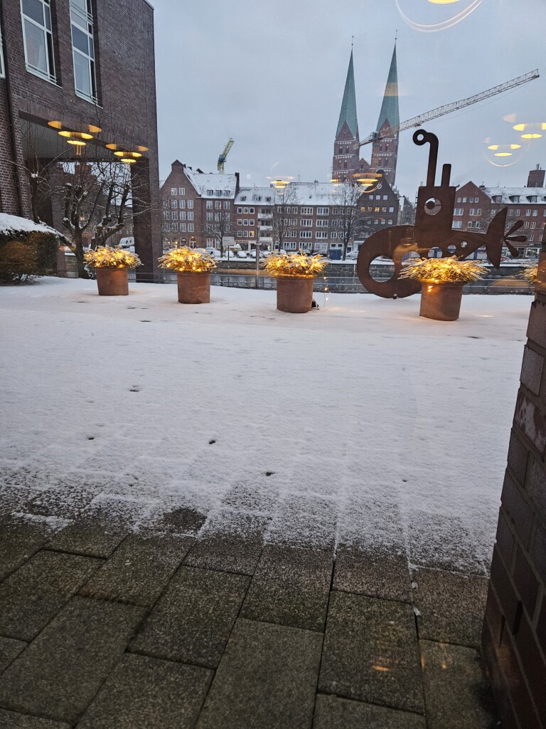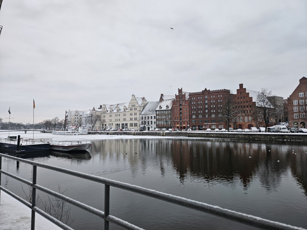 Nu weer terug naar Nederland maar heb genoten van stad Lübeck. De combinatie van besneeuwde stad en temperaturen van -2°C geven de stad extra sfeer. Weinig ijs op het water maar wellicht dat stadsverwarming dat water gebruikt voor koeling? Andere verklaring heb ik anders ook niet. Sneeuwdek ongeveer 7 cm. Een paar foto's rond ons hotel.