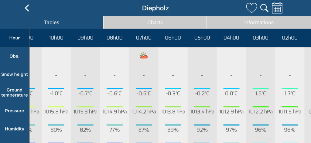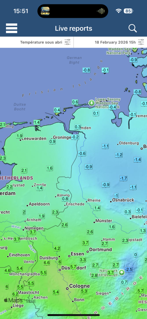 Leuk zeg! Tact 0,2 alhier en volle bak zon . Daar waar het nu -1,7 was het eerder vandaag flink warmer. Een soort koude bubbel daar onderweg in Zuid Nedersaksen.
