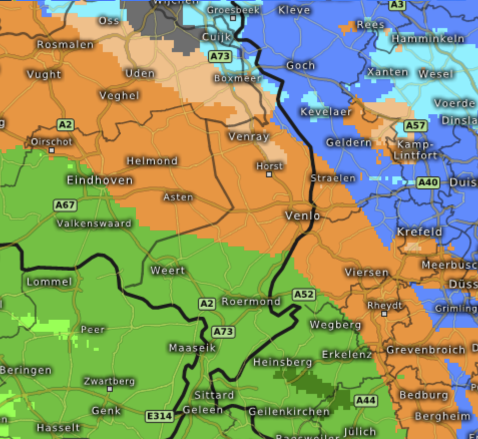 Radar zegt sneeuw, werkelijkheid: motregen, geen sneeuw te zien hier.