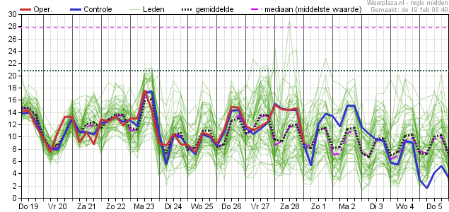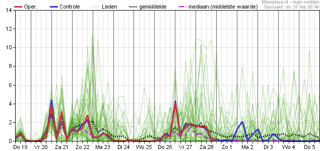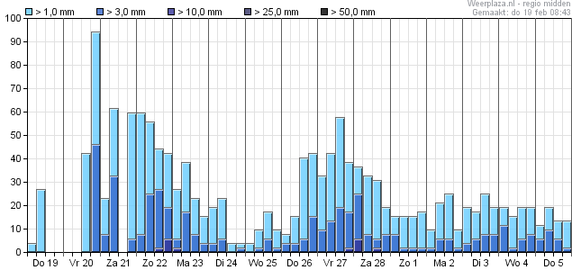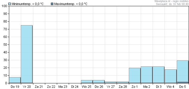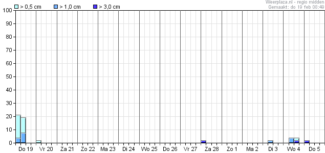 Pas vanaf woensdag 25 februari is er weer een heel kleine kans, welke vanaf 1 maart iets groter worden maar nooit de 30% overstijgen.