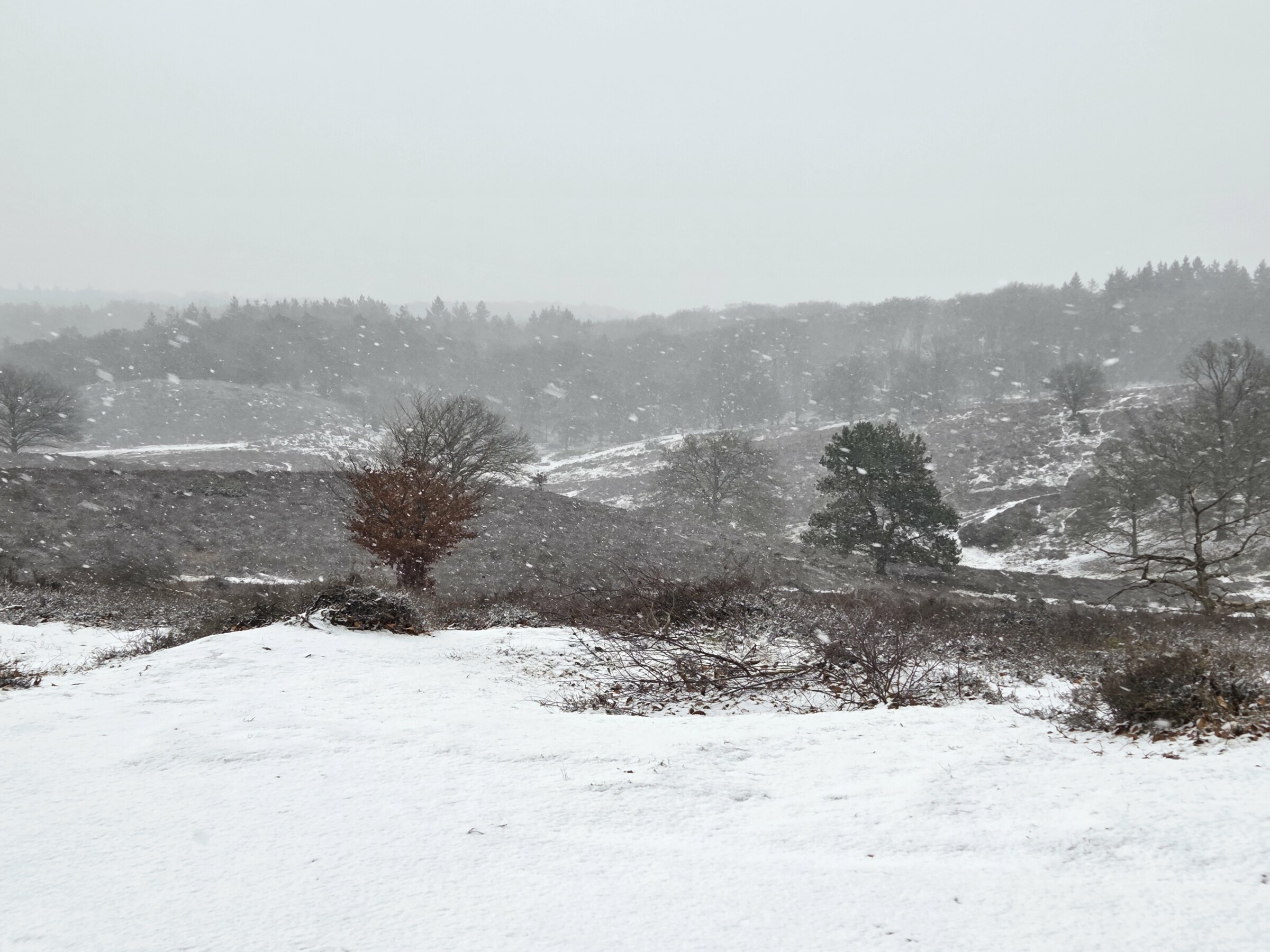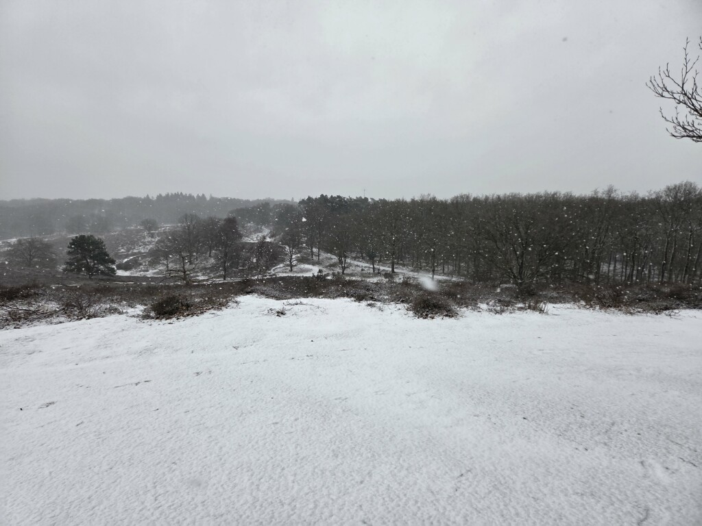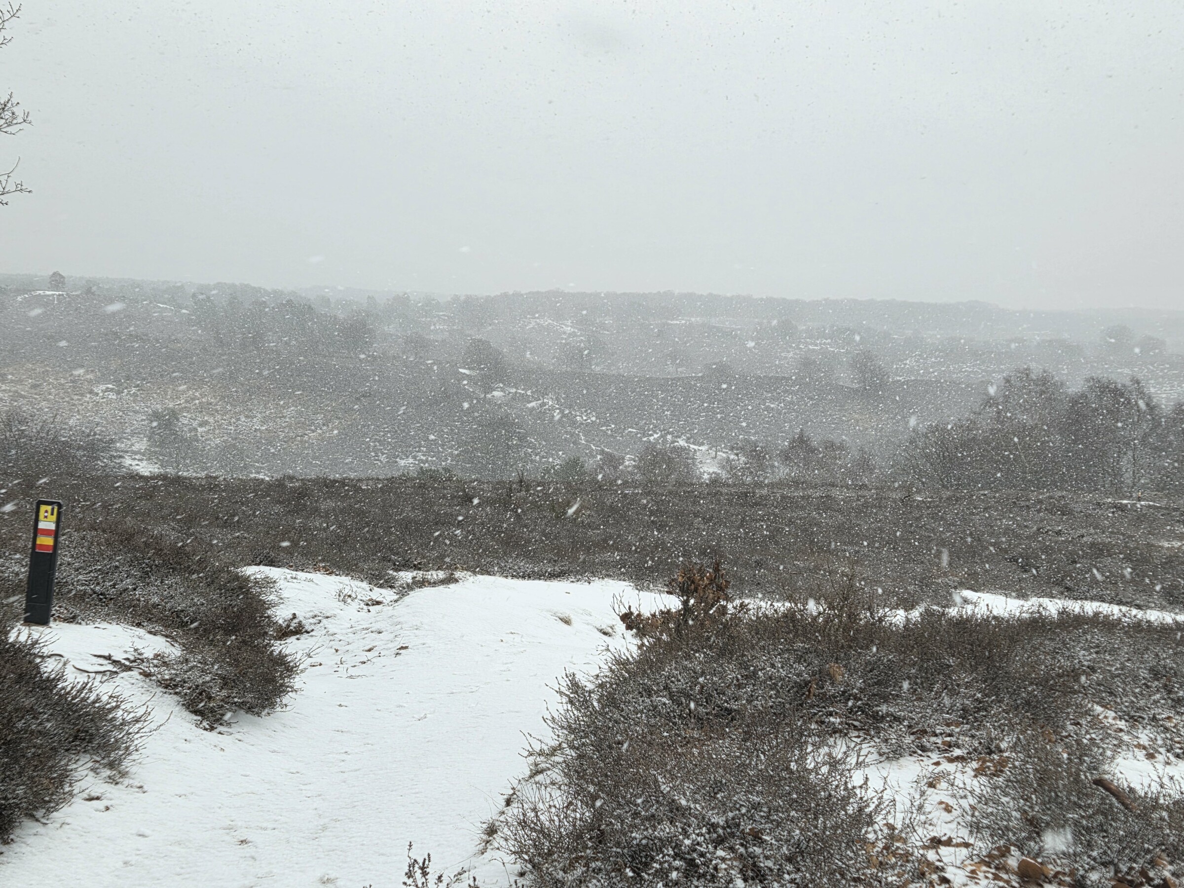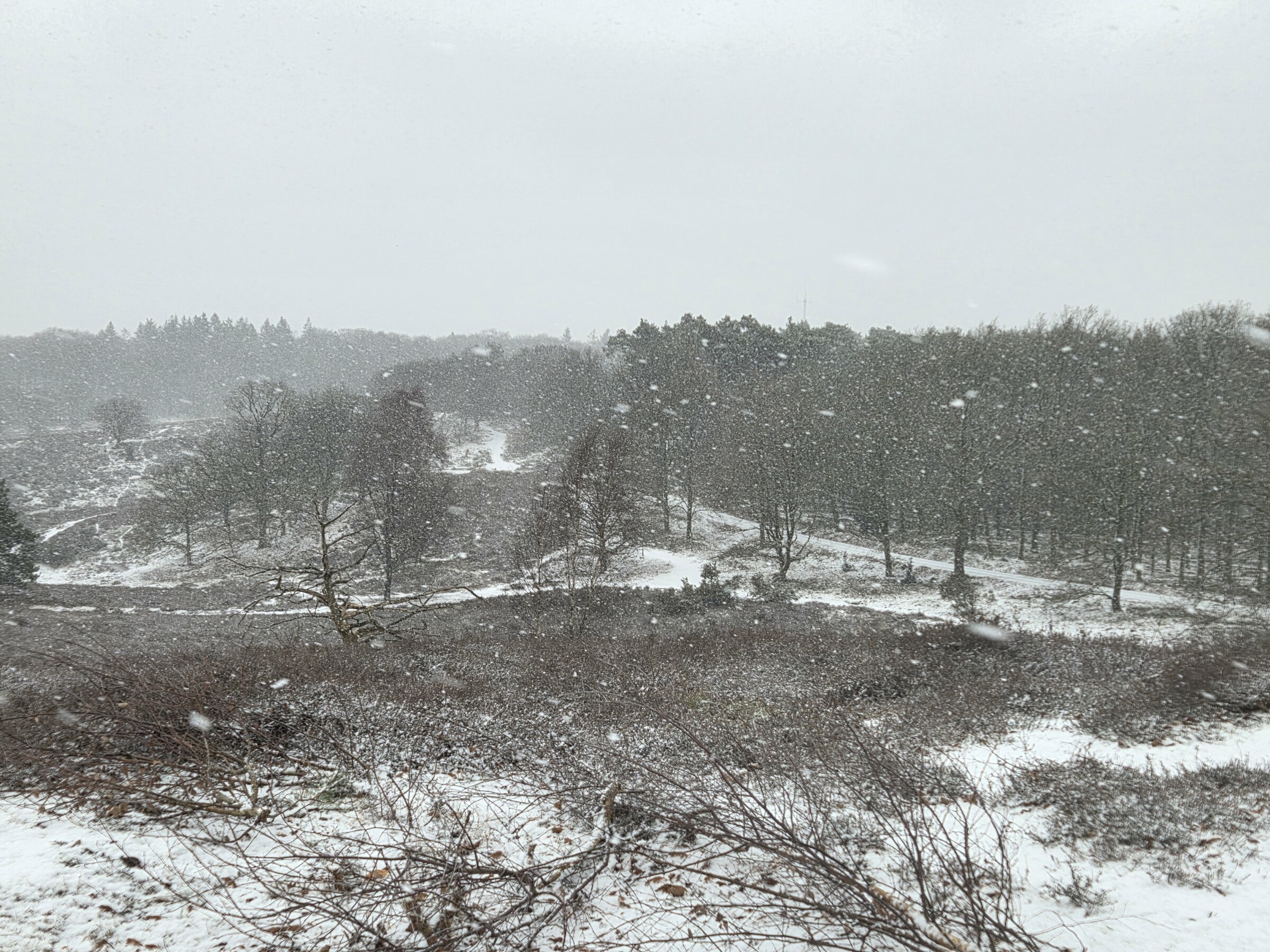 9:30 Zijpenberg Veluwe, matige tot zware sneeuwval, 1,5 cm