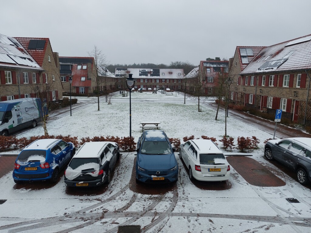 Sinds 9u vanochtend zijn de bomen gaan druppen en wordt de sneeuwlaag alleen maar dunner. Zoals op de foto te zien, inmiddels geen sneeuw meer op de bomen en ook de straat zie je nu door de sneeuw heen (terwijl de laag vanochtend dik genoeg was om de straat niet meer te zien). Het gaat snel nu, dus ik ga nog even snel het bos in om afscheid te nemen van de sneeuw. Ook al zal het druppen, sneeuw is sneeuw