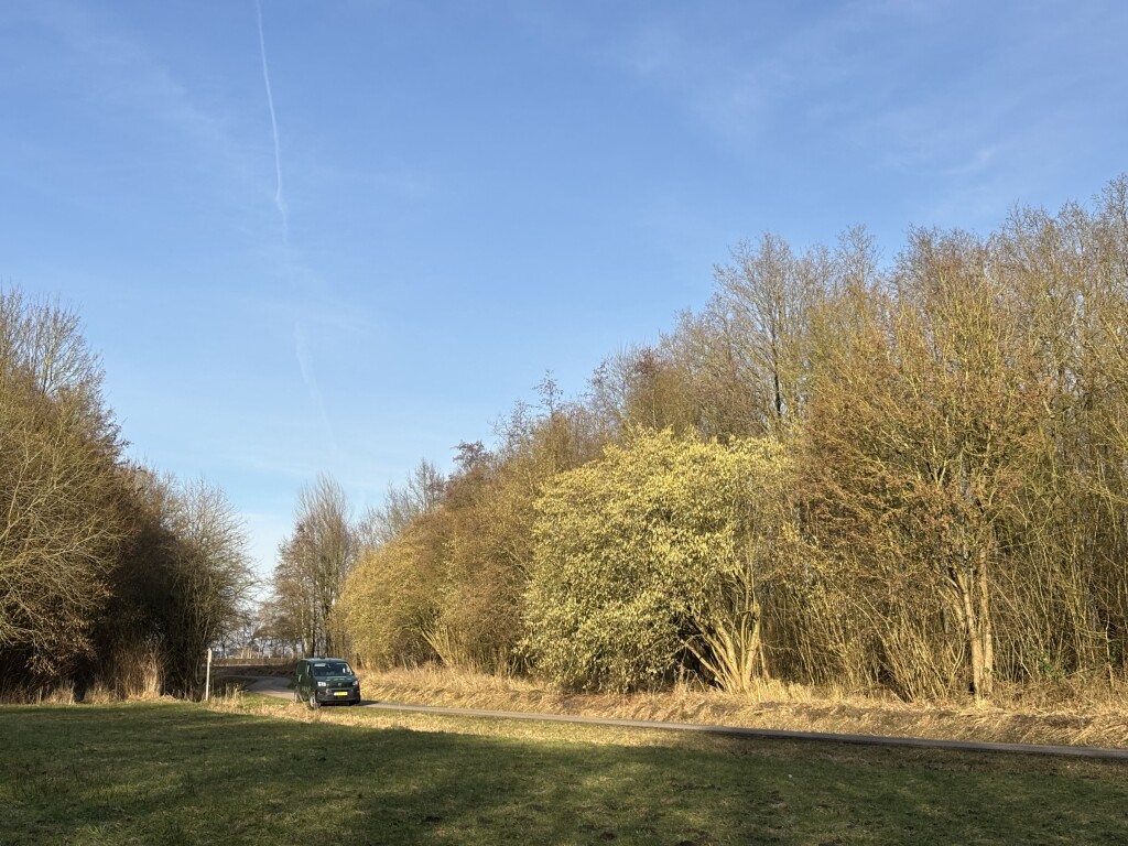Een aantal Hazelaars die veel in de zon staan, zijn compleet in bloei. Hier in het dorp waar ik vaak m’n rondjes doe zijn ze nog behoorlijk rustig de hazelaars.