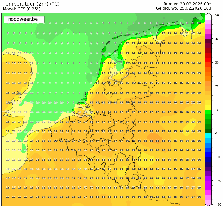 In GFS zien we de optie tot 18°C. Bij voldoende instraling en weinig wind misschien een verrassing.