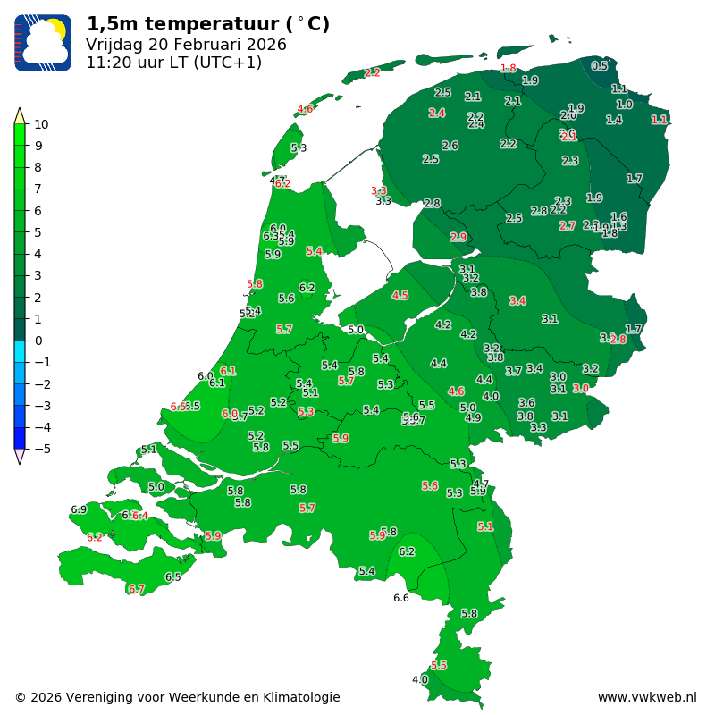 Inmiddels 6,0°C hier, het wordt langzaam wat warmer