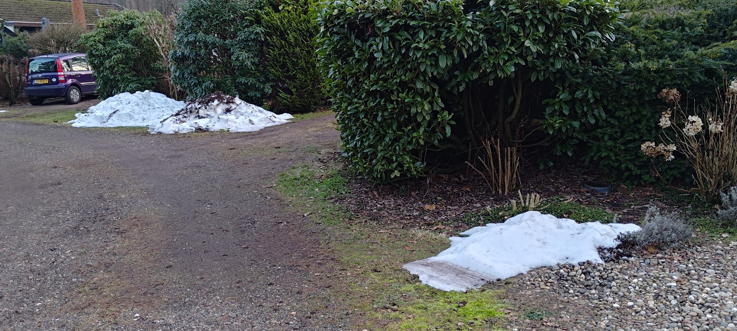 De ene foto is van vandaag en de ander van 24 januari. Maandag ga ik weer naar het westen, dus ben benieuwd of het voor die tijd al is weggesmolten.