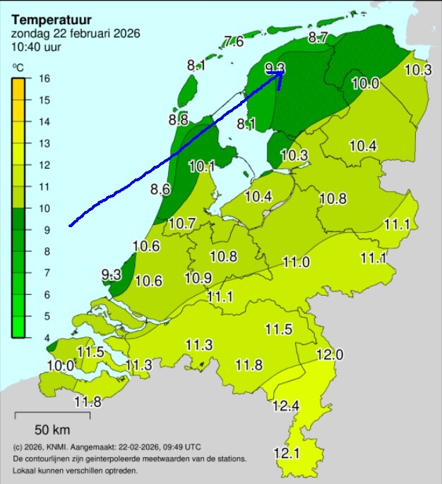 Re: Invloed Noordzee temperatuur mooi te zien...