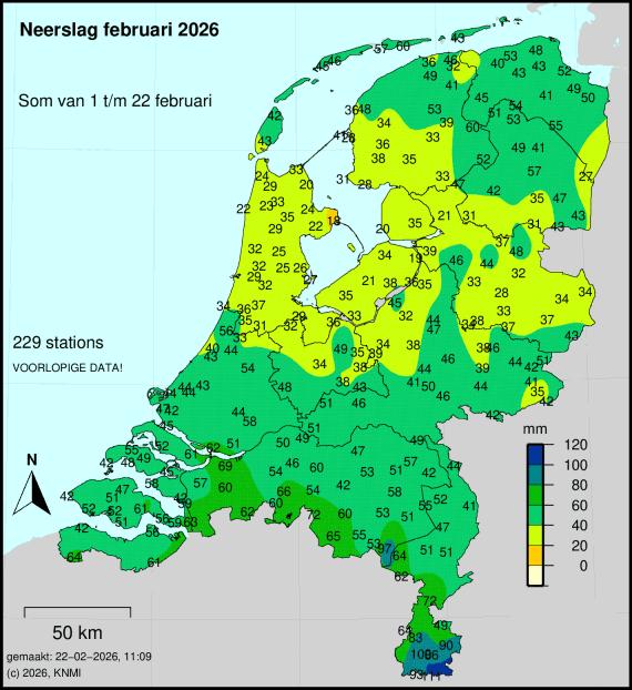 Op het noordoosten na, van Noord-Holland tot en met Overijssel juist een droge maand tot zover. Komt nog wel wat bij maar onvoldoende om de normaal te halen verwacht ik.