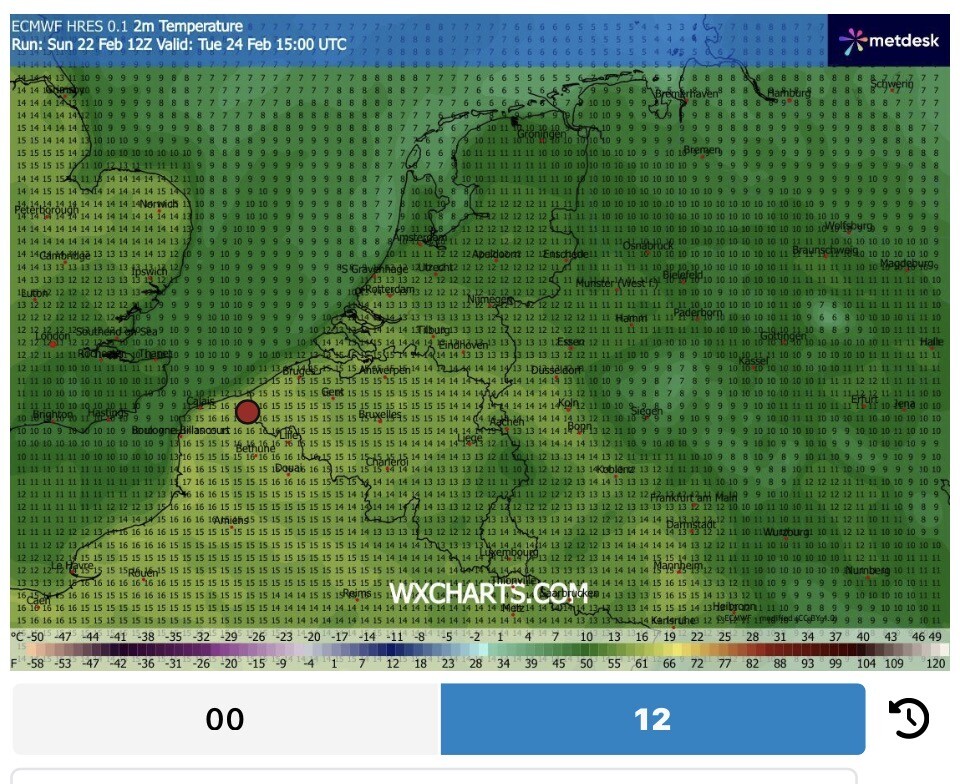 *note: sommige dagen heb ik het tijdstip iets vroeger gedaan want dan worden de hoogste temperaturen bereikt die dag.