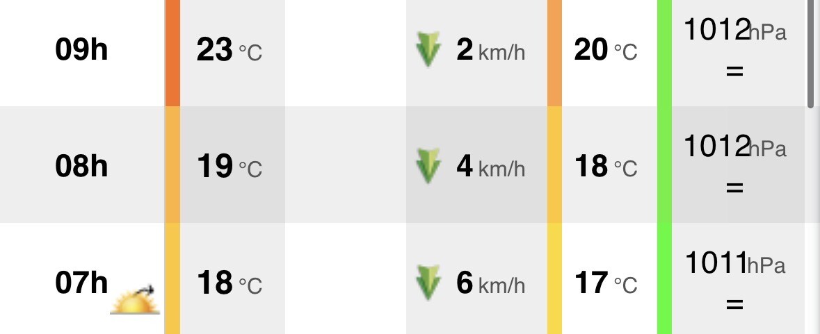 Nu bij zonsondergang een zalige 30-32C met een lichte zeewind. Tegen middernacht dalen de temps weer naar 22-24C. Als warmte-liefhebber zalig! Locals ervaren dit nog steeds als winter/herfst, vooral om het tijdens het regenseizoen onuitstaanbaar vochtig kan zijn en de dagelijkse gang dan minder ruim is.