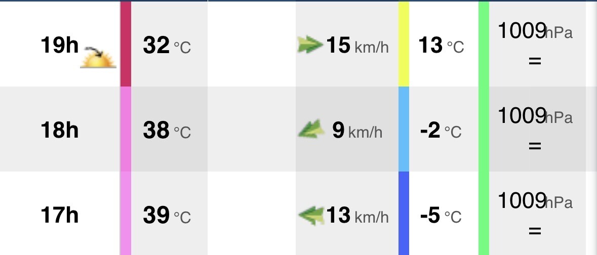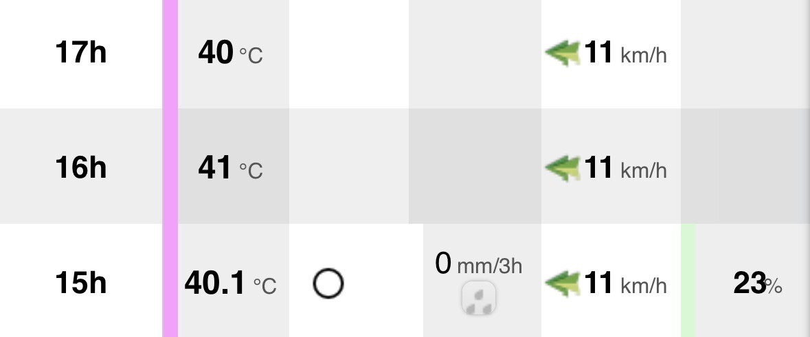 Stukje het binnenland in enkele scholen bezocht die wij sponseren. Dichtstbijzijnde station noteerde tussen 15 en 17u 40-41C, in de schaduw best te doen bij erg droge lucht.