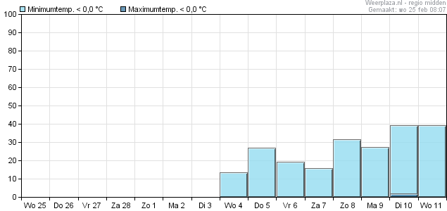 Vorstkansen zijn er weer vanaf woensdag 4 maart en lopen dan richting het eind van de periode geleidelijk op tot maximaal 40%