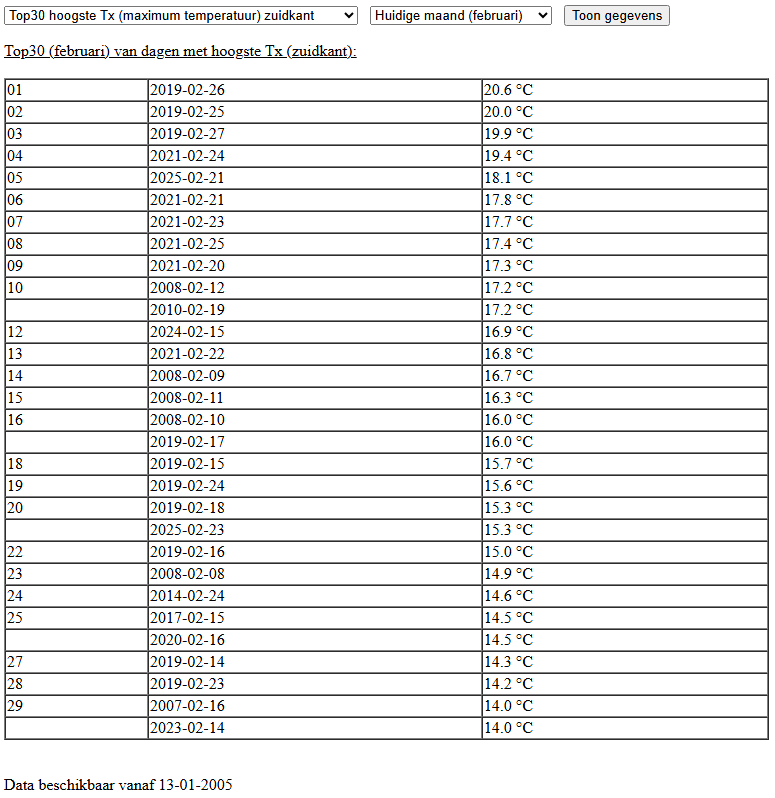 Het absolute maandrecord staat hier op 20,6°C en komt ook uit 2019.