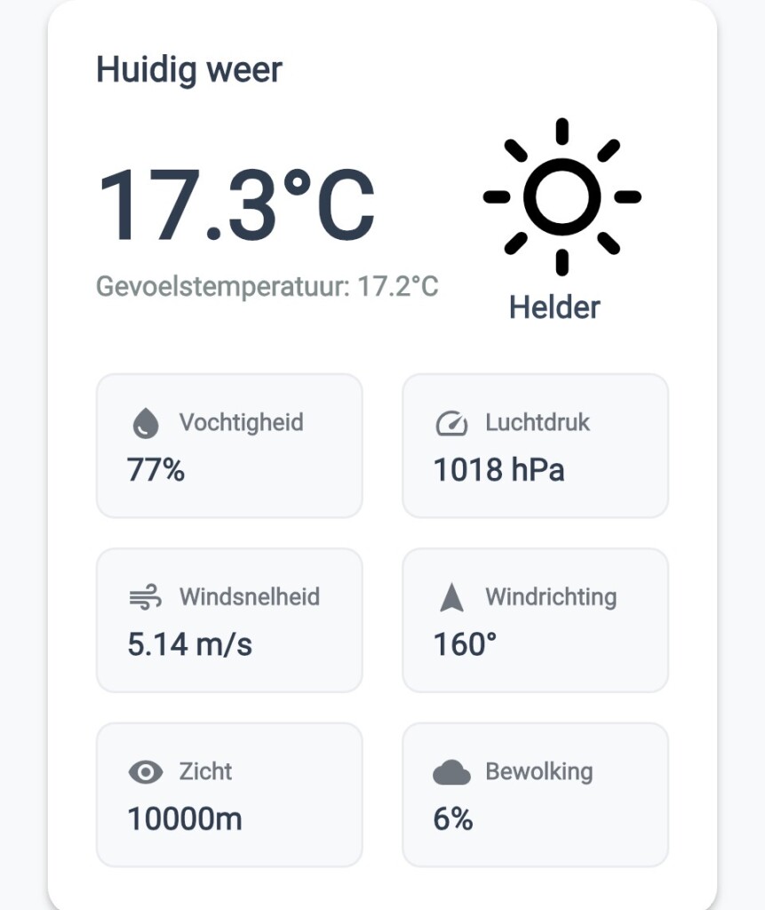 Beter weer dan dit kan je nauwelijks krijgen! Tact 17,3C en zo goed als onbewolkt. Daarbij staat er een matig windje van BFT 3