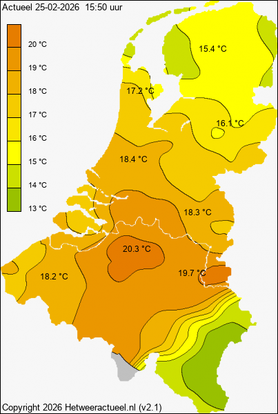 Tmax 13,7C extreem voor hier, Tact 13,3C