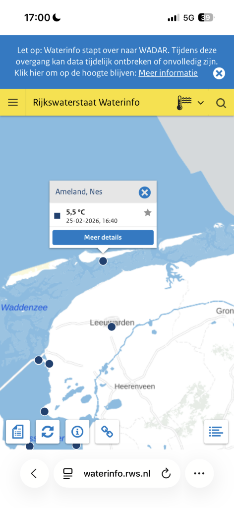 Het water zit al op 5 graden en dat zie ik ook in het IJsselmeer terug en uiteindelijk bij zoveel warmte op land, heb je steeds meer koud water nodig om het zaakje te blijven overwinnen vanuit de kou. Ook is het water oppervlak waarover de lucht strijkt, bij volledig zuid op z’n kleinst - op ZO wind na dan. Dat verklaart het alles bij elkaar wel.