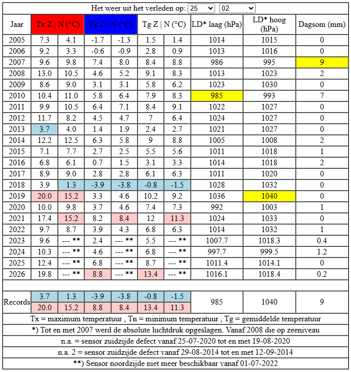 Het dagrecord voor hoogste Tn is aangescherpt van 8,2°C naar 8,8°C