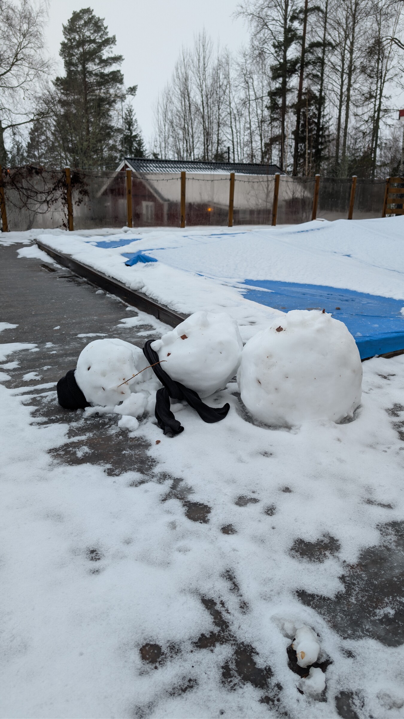 Rond acht uur werd de “plaats delict” ontdekt. De sneeuwman — vermoedelijk pas enkele dagen oud — lag ontmanteld naast het met een blauw zeil afgedekte zwembad. Het hoofd was volledig losgeraakt van de romp en lag enkele centimeters verderop, nog deels bedekt met een zwarte muts. Een donkere sjaal lag verfrommeld tussen de segmenten, alsof hij tijdens een worsteling was losgetrokken.