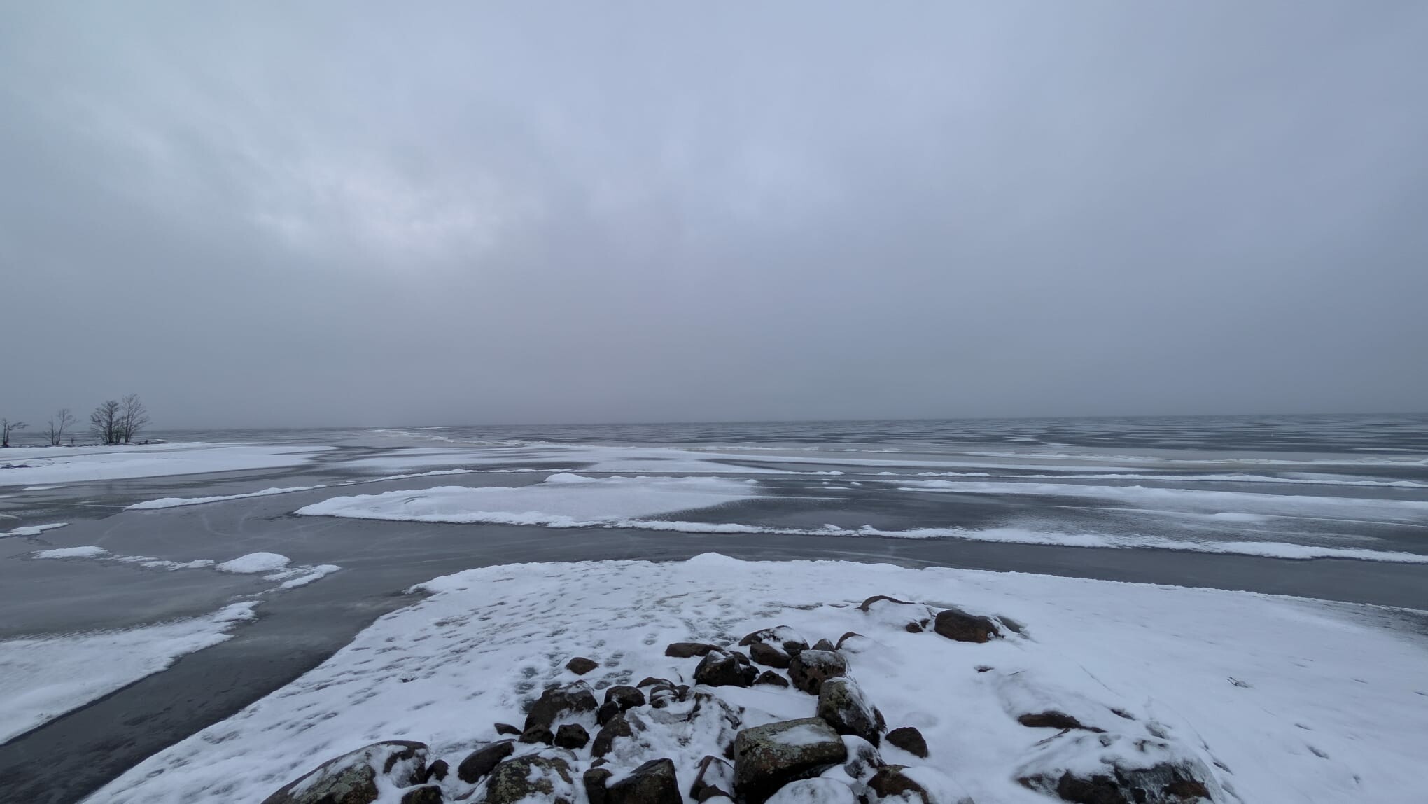 Op het ijs ligt een laagje water inmiddels. Het water verzameld van de kant af, omdat de waterstand laag is en het ijs ''naar binnen afloopt''. Ijs is nog altijd 30cm dik, dus ik ben heel benieuwd hoe lang het smeltproces gaat duren en of het kapot breekt op den duur.