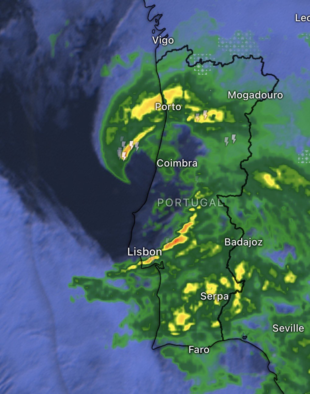 Er waren ingebedde convectieve elementen in de sting jet van Kristin, wat wellicht een extra bijdrage heeft geleverd aan de extreme windstoten in de Leiria en Coimbra districten. De grote hoeveelheid ontladingen binnen het occlusiefront van Kristin was bijzonder, zéér ongewoon voor een extratropisch systeem. In tegenstelling tot wat de Reading universiteit beweerden—zij beweerden dat Kristin het Noorse schoolmodel volgde—was er wel degelijk sprake van een Shapiro-Keyser systeem. Er was een duidelijke breuk tussen het koufront, wat loodrecht op het warmtefront stond, en het warmtefront. De radar- en satellietbeelden zijn indrukwekkend te noemen. De snelle cyclogenese (RACY) werd in gang gezet doordat het systeem optimaal gebruik maakte van de linkeruitgang van de zeer intense jet streak (~370 km/u volgens ERA5). Verder lagen de SSTs rond de 14 á 15°C, dus Kristin zal ook wel wat hebben gehad aan diabatische opwarming door middel van het vrijkomen van latente warmte en condensatie. Wat dat betreft denk ik dat Kristin een perfecte storm was, met windstoten van 200-230 km/u.