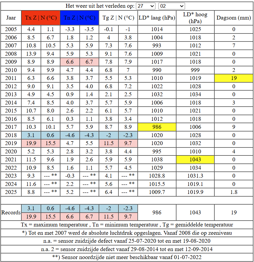 Hoogste Tn staat op 6,6°C en dateert uit 2009.