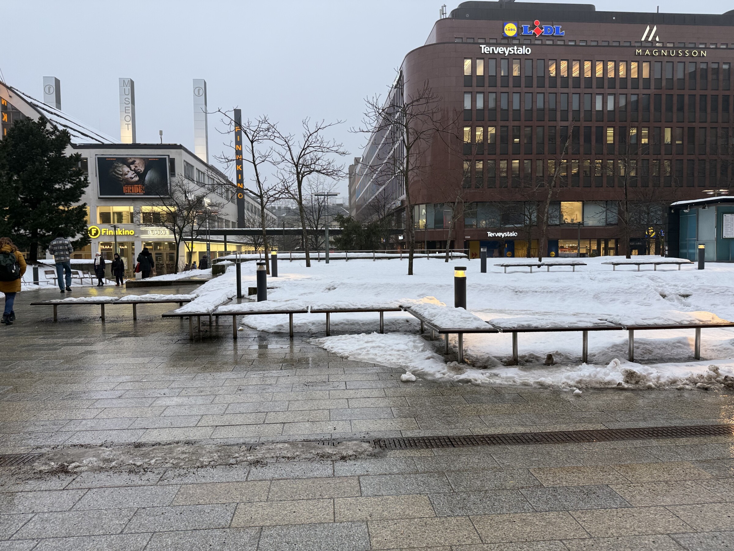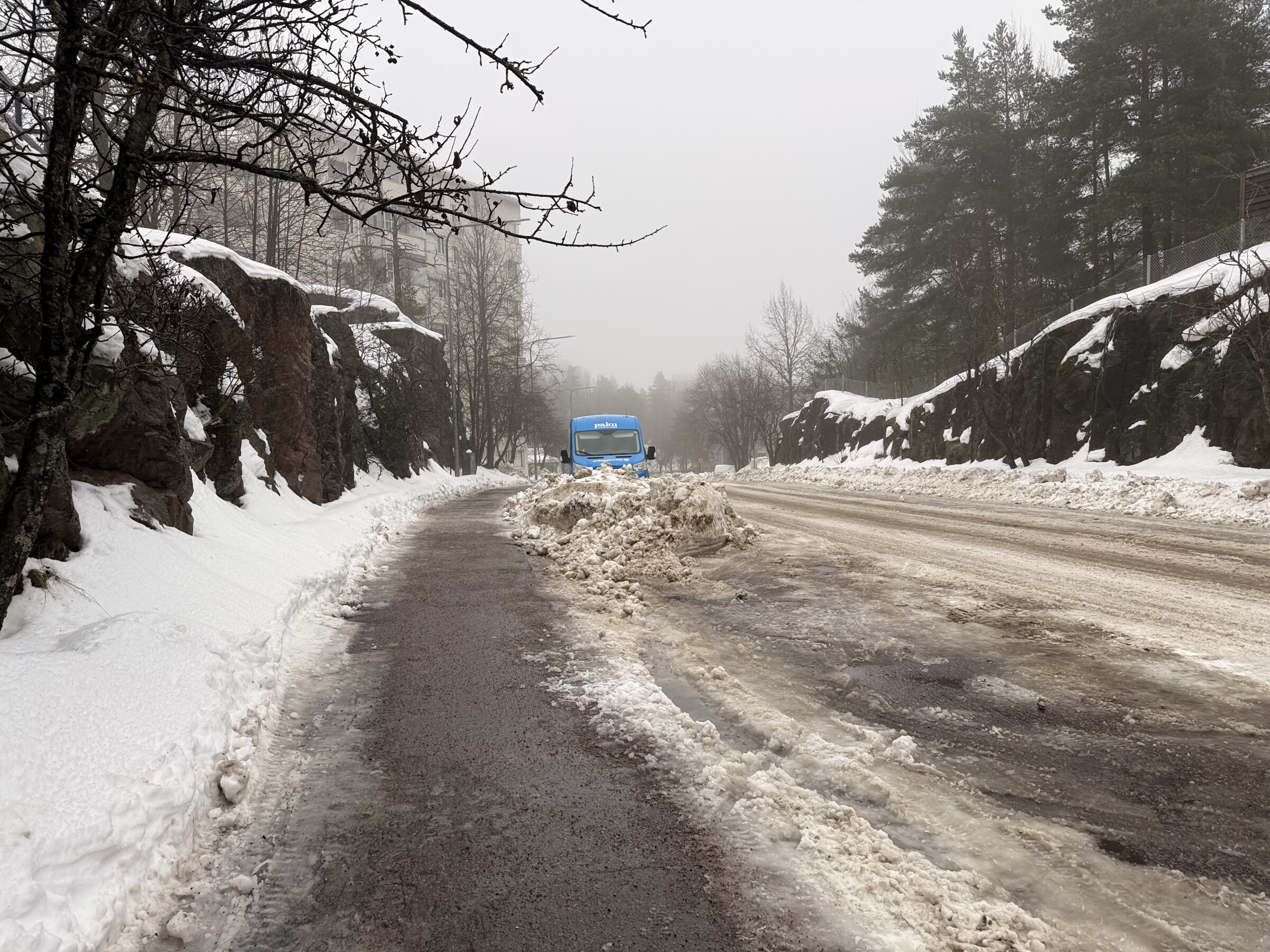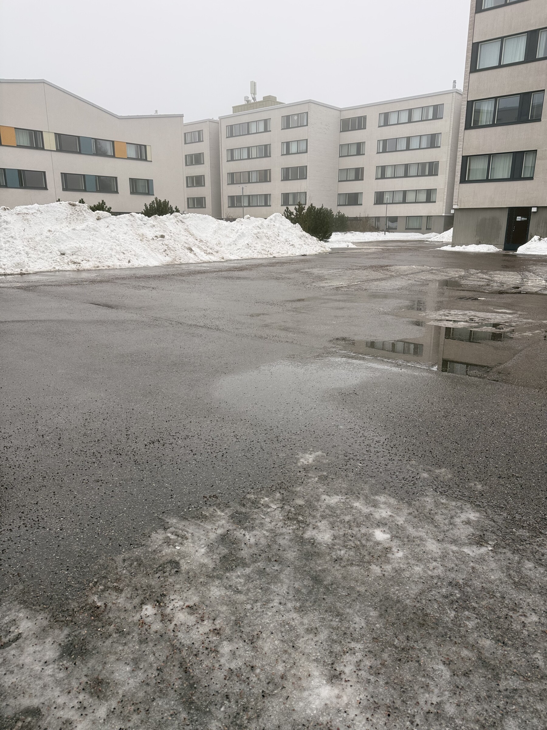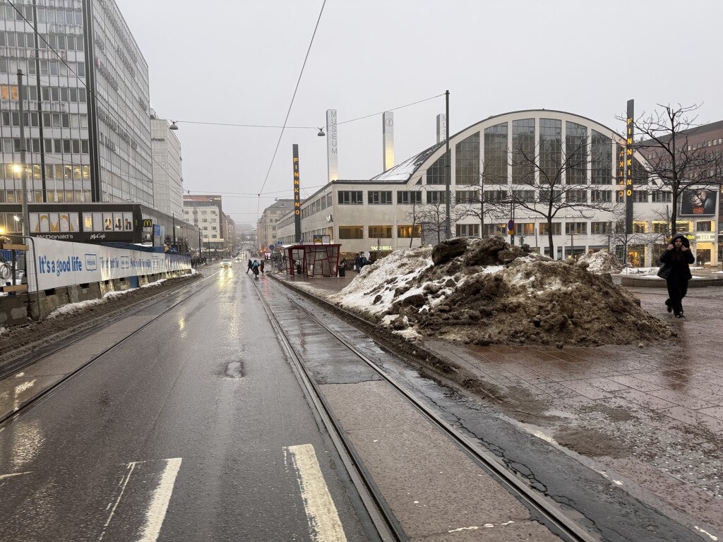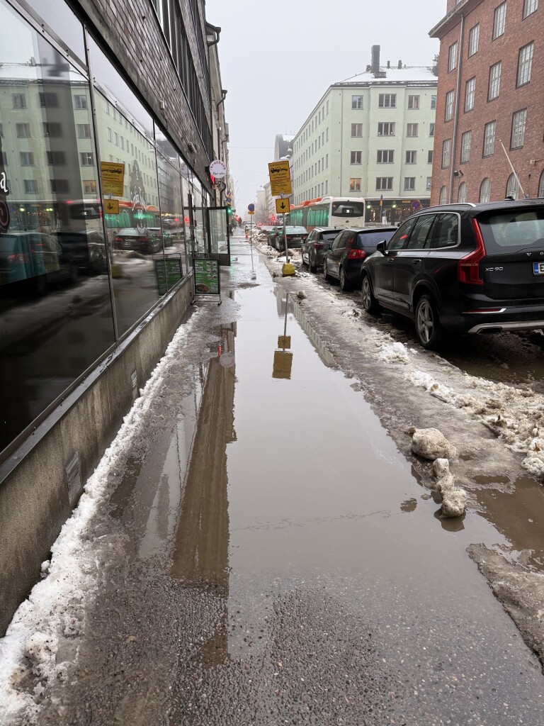 De sneeuw smelt toch best snel weg nu. Kleine smeltriviertjes stromen door de straten. Het is in de loop van de dag ook steeds mistiger geworden.