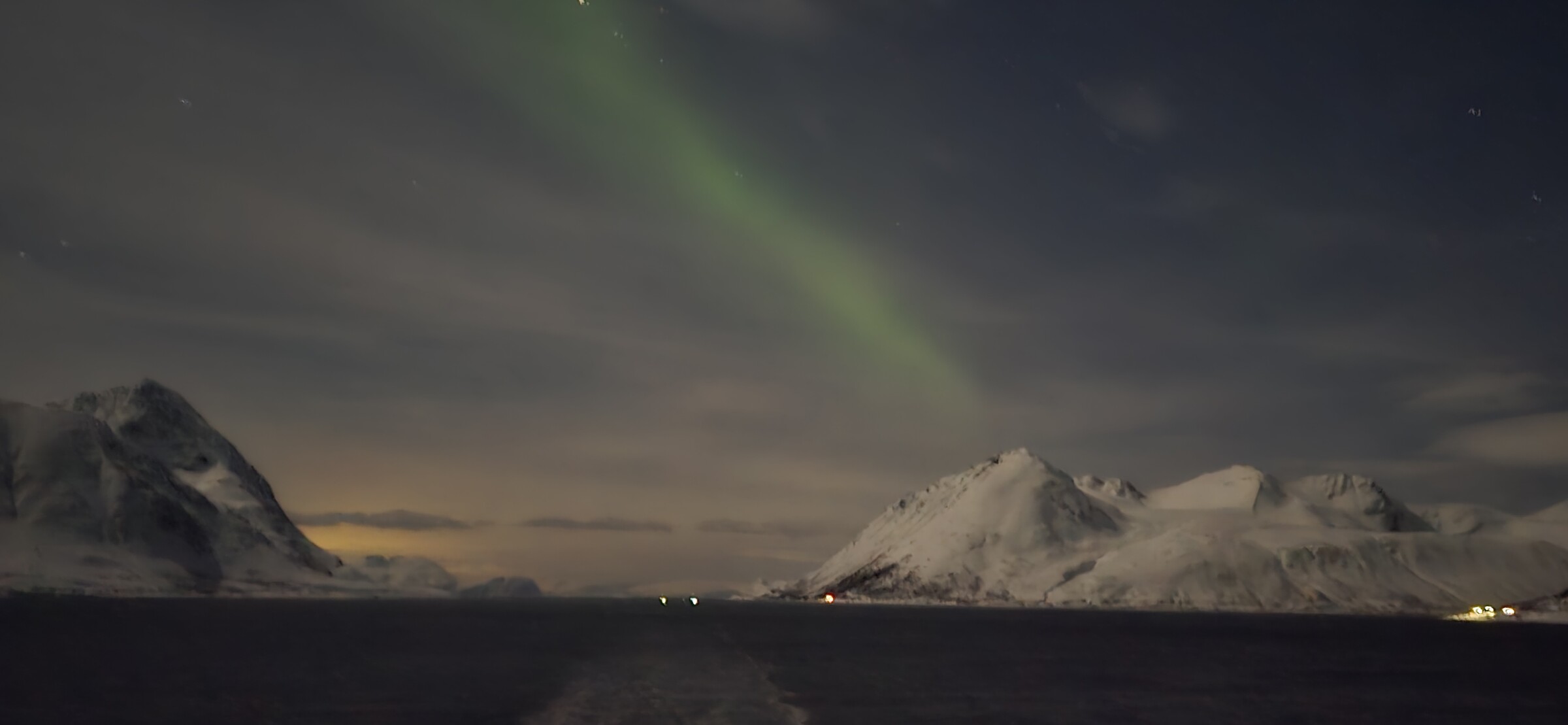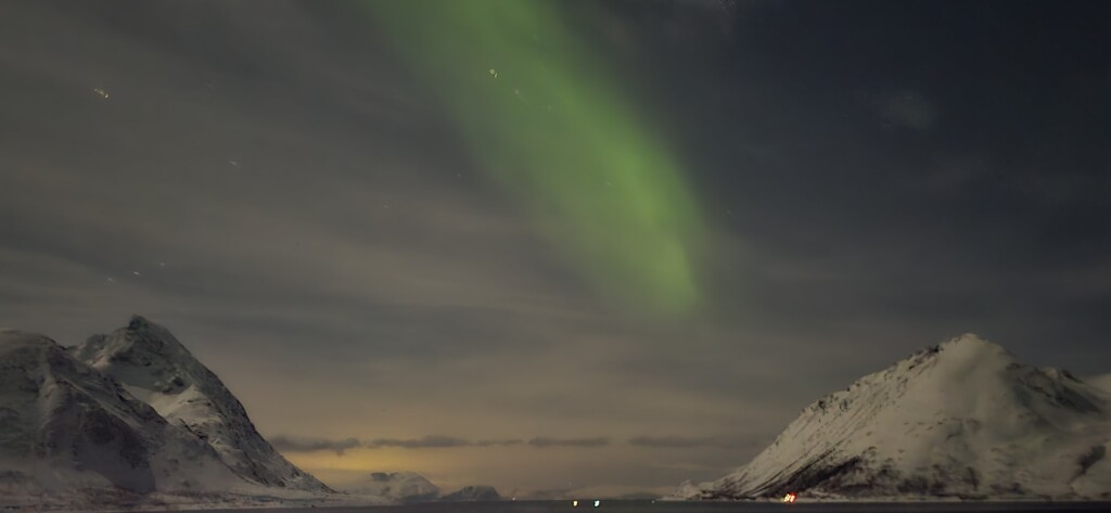 We zitten inmiddels tussen Tromso en Hammerfest, en vanavond was het wel raak.