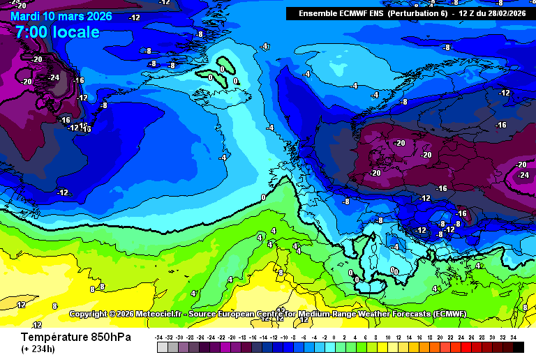 -20 op 850 hPa komt in de buurt van de Benelux. Toch wel een bijzonder afwijkende berekening, deze laat hier in Finland bijvoorbeeld ook weer de diepvrieskou binnenstromen op slechts 6 dagen vooruit, terwijl geen enkel ander lid daarbij in de buurt komt.