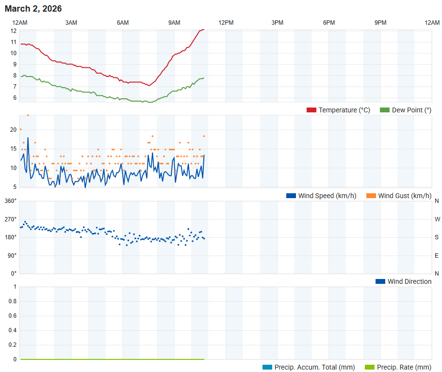 Tact 9.7, Tmin 5.8, strakblauwe hemel en dus zonnig