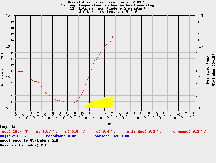 Inmiddels is de temperatuur opgelopen tot 16,7°C en daarmee is het 21e dagrecord van dit jaar een feit.