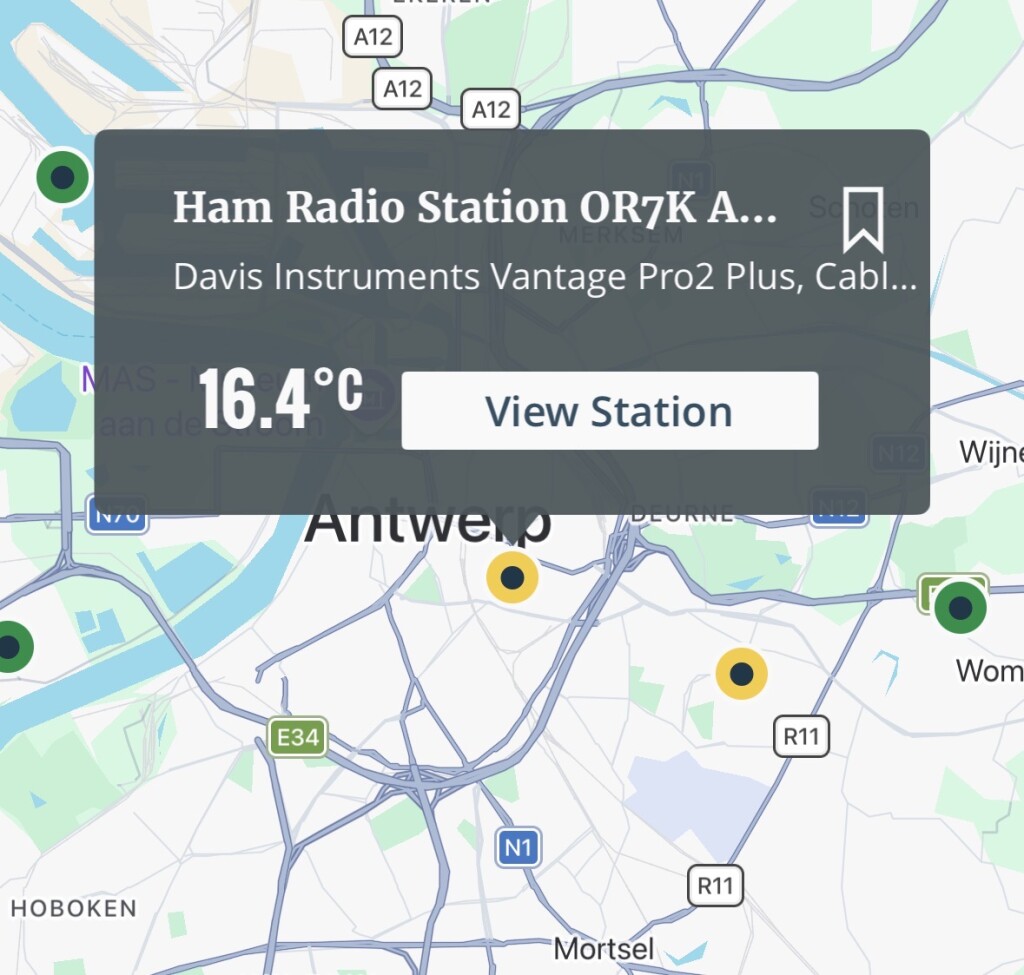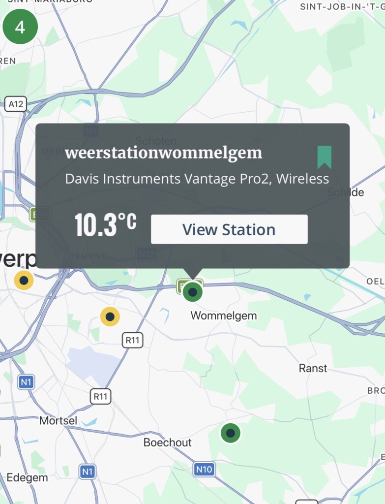 Warmte-eiland in de stad duidelijk te zien hier, 6 graden verschil met Wommelgem op dit moment