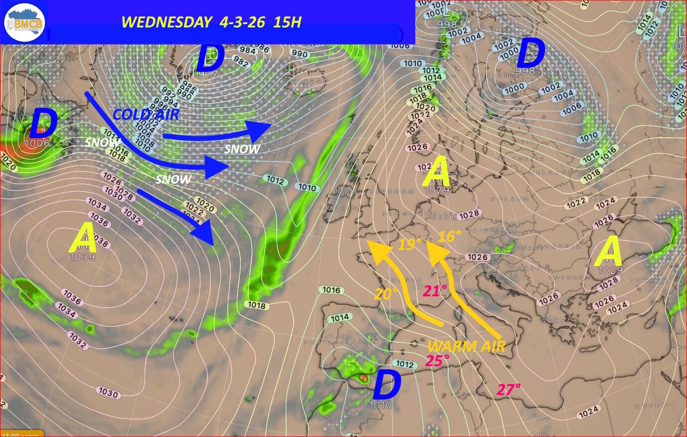 Terwijl het grootste deel van West-Europa profiteert van de invloed van een krachtig hogedrukgebied dat zich uitstrekt van het zuiden van Scandinavië tot aan de Zwarte Zee, bevinden wij ons in een opmerkelijk zachte luchtmassa die wordt aangevoerd vanuit het Middellandse Zeegebied.