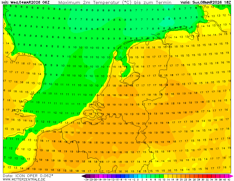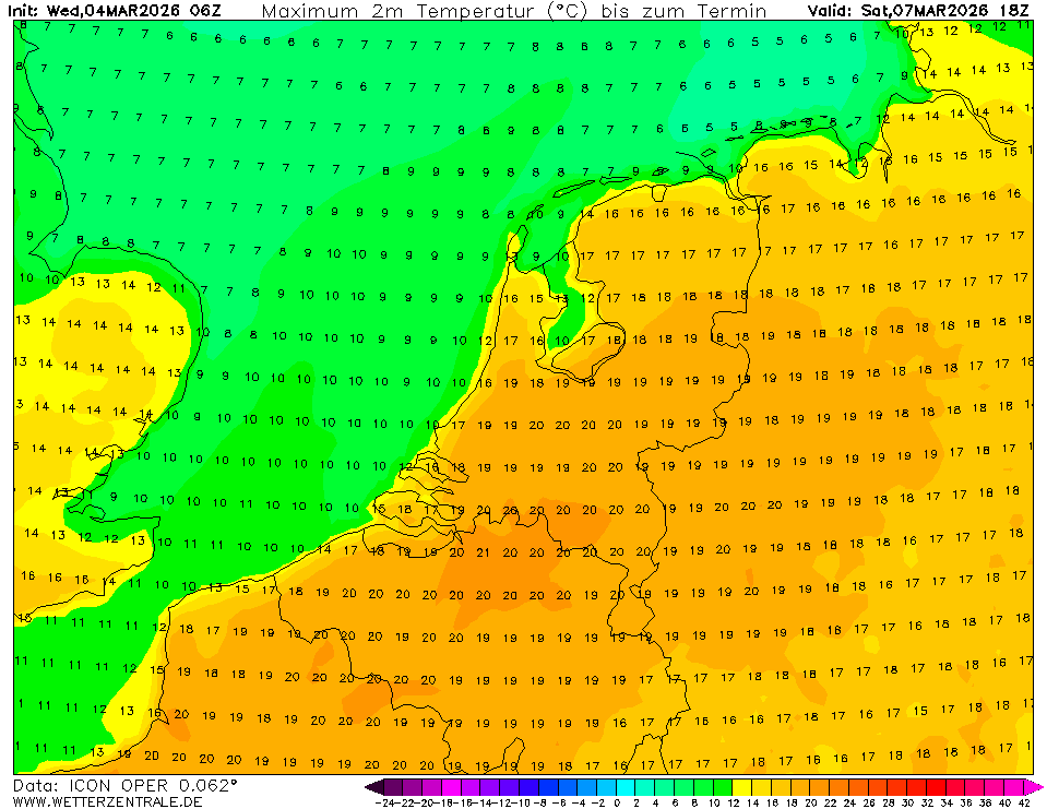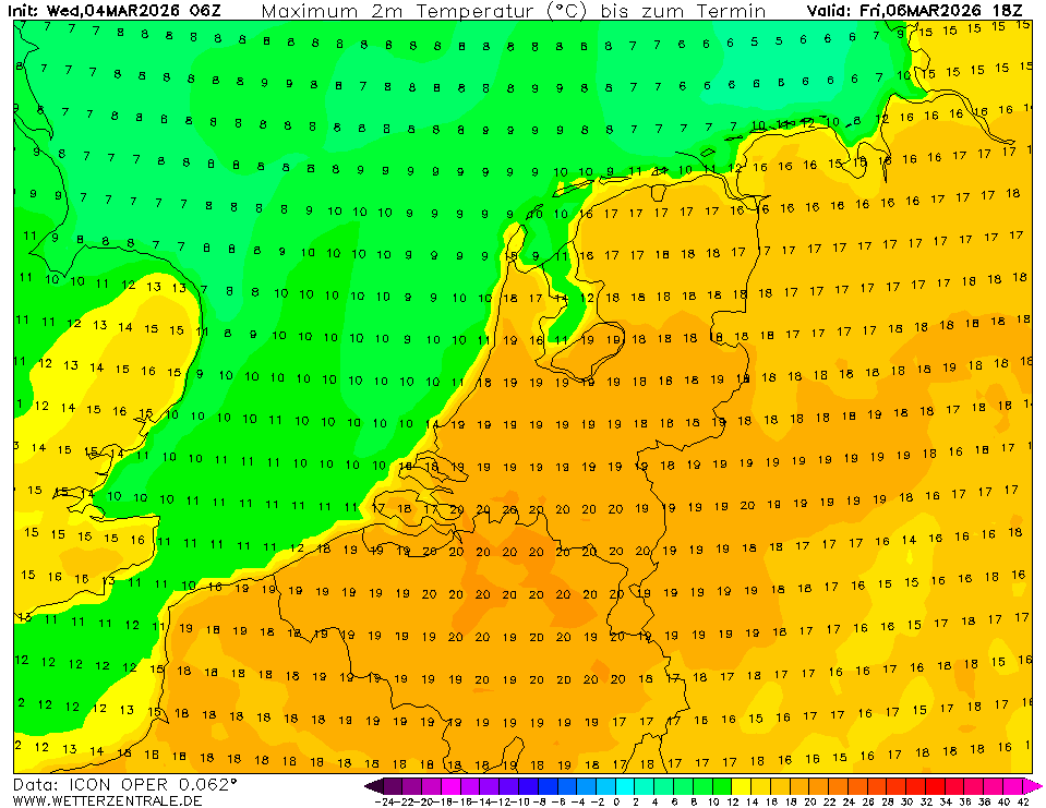 ICON voor vrijdag t/m zondag telkens rond de 20 graden in Zuid-NL/BE