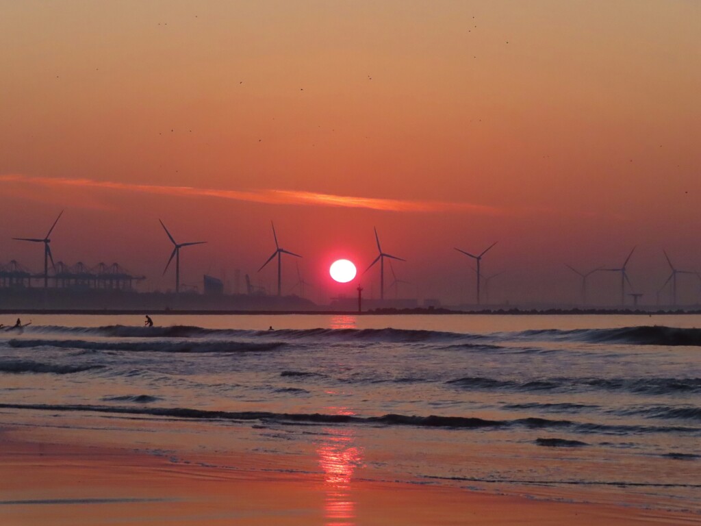 Zonsondergang boven de Maasvlakte na eerste 'zomeravondje' fietsen