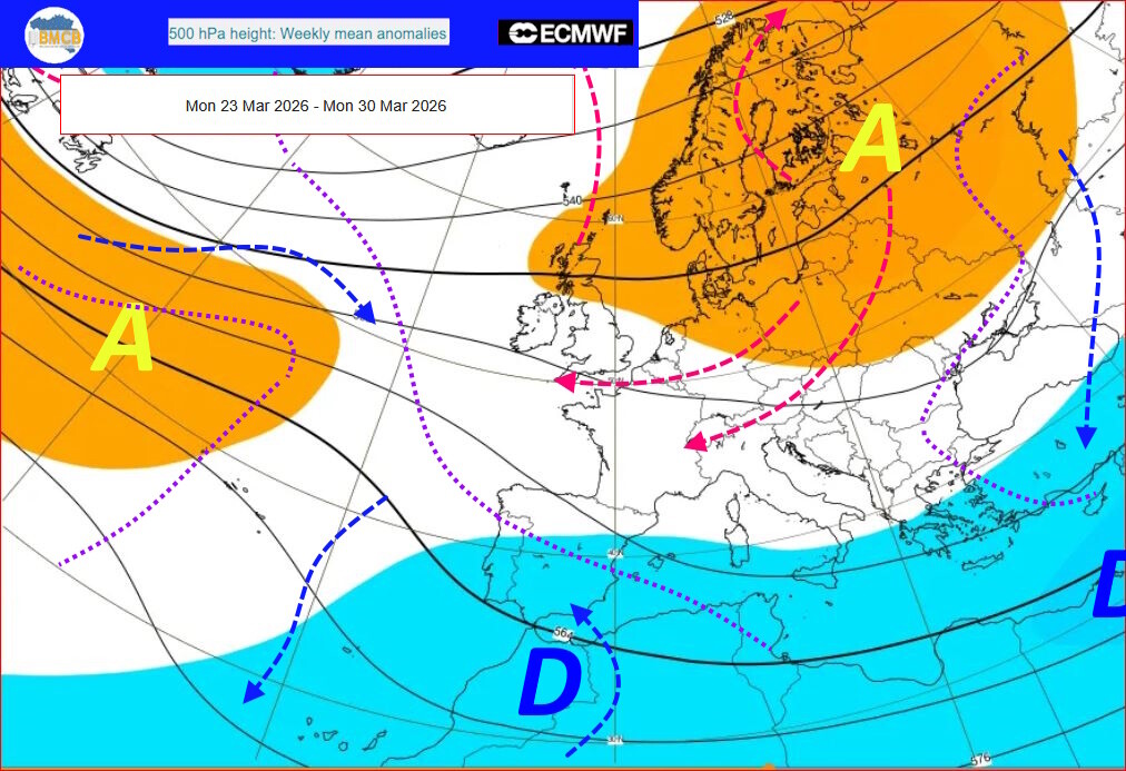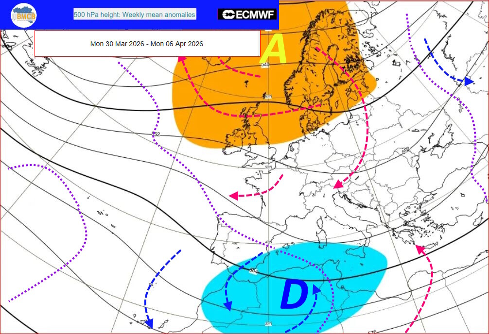 De prognoses op het niveau van de middelbare troposfeer wijzen op een aanhoudend hogedrukgebied boven het noorden van het Europese continent en het noordoosten van de Atlantische Oceaan. Lagedrukgebieden zouden zich voornamelijk concentreren boven het zuidelijke Middellandse Zeegebied en de Maghreb.