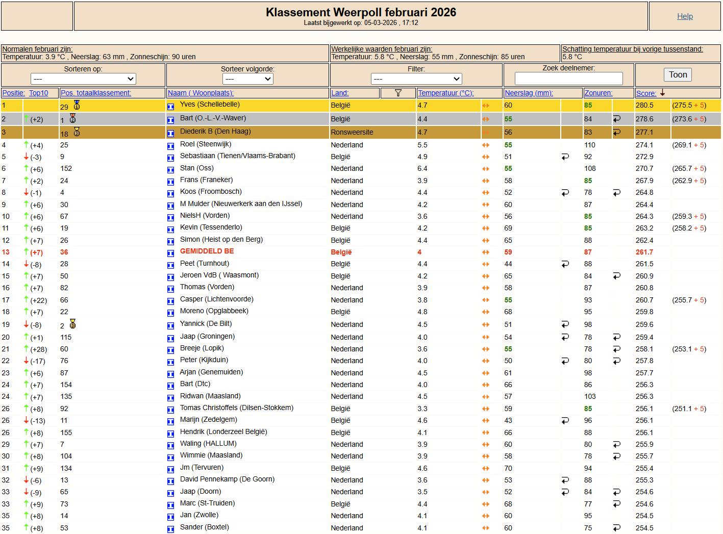 Gisteren presenteerde ik wat dacht dat de uitslag van de Weerpoll van februari zou zijn.