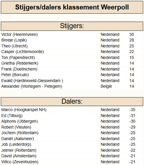 Omgekeerd valt Bart (O.-L.-V.-Waver) nu alsnog in de prijzen (hij had de hoeveelheid neerslag exact voorzien).